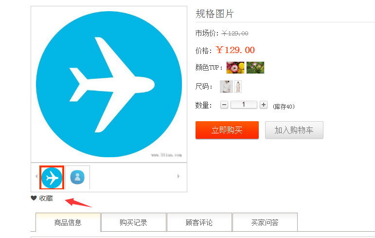 ①.以pc营销版为例,选择产品详情,在样式设置中开启收藏功能,可以看到图片下方增加了收藏按钮。