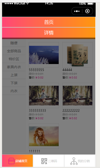 3.若需要返回到此小程序的任意页面时,点击分销店铺的导航栏即可,如图所示: